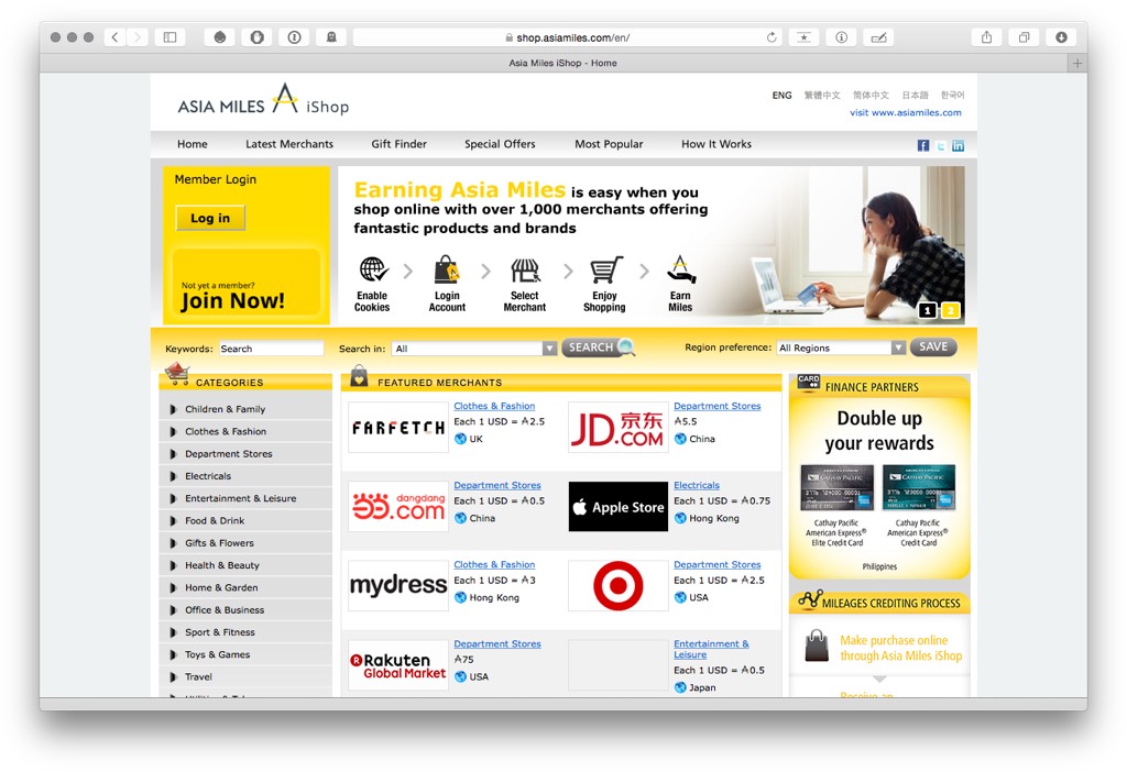 Earn Asia Miles by shopping online with Asia Miles iShop and other partners