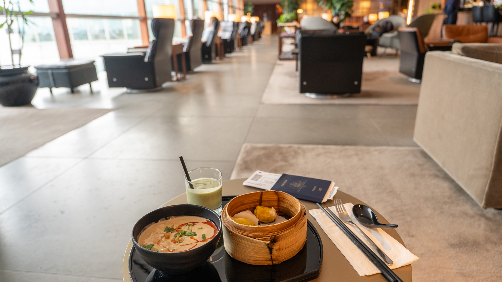 The highlight here is the Noodle Bar. Freshly prepared dishes, such as wonton noodles, dan dan mien, and dim sum, are made to order. The food quality is consistently high and comfortably outperforms most European airline lounges.