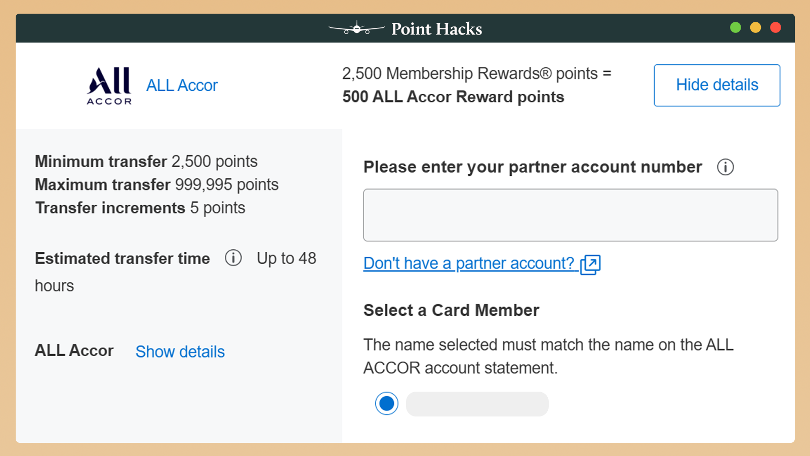 Members can now convert points at a 5-to-1 rate with a minimum transfer of 2,500 Membership Rewards points to 500 ALL points. The partner page on the Amex website indicates that it may take up to 48 hours for the points to transfer across.