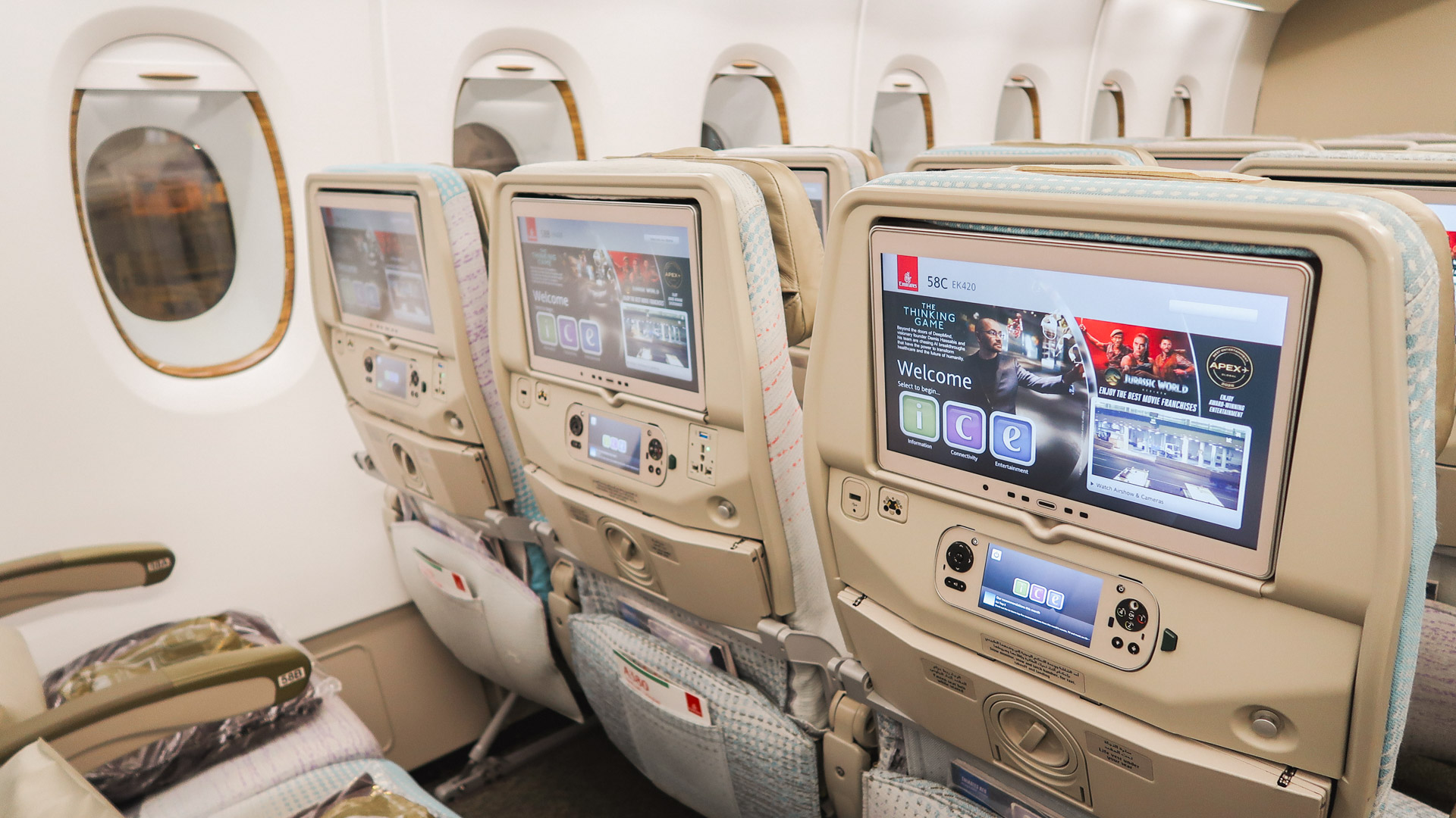 Even in Economy, Emirates maintains one of the more consistent long-haul offerings. Expect 18″-wide seats on the A380 and generous 13.3″ entertainment screens with Emirates’ complete ICE library.