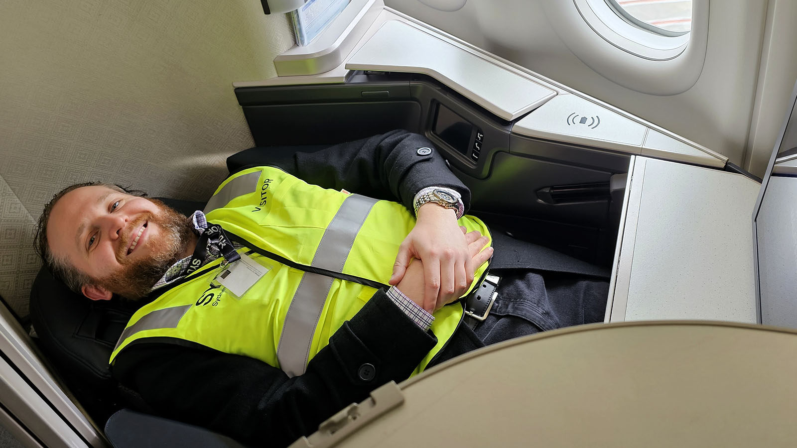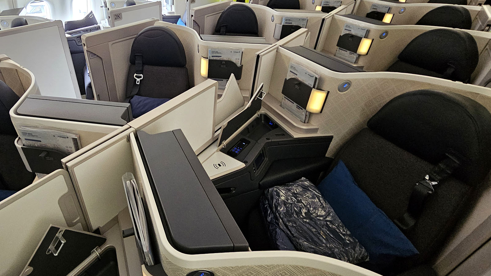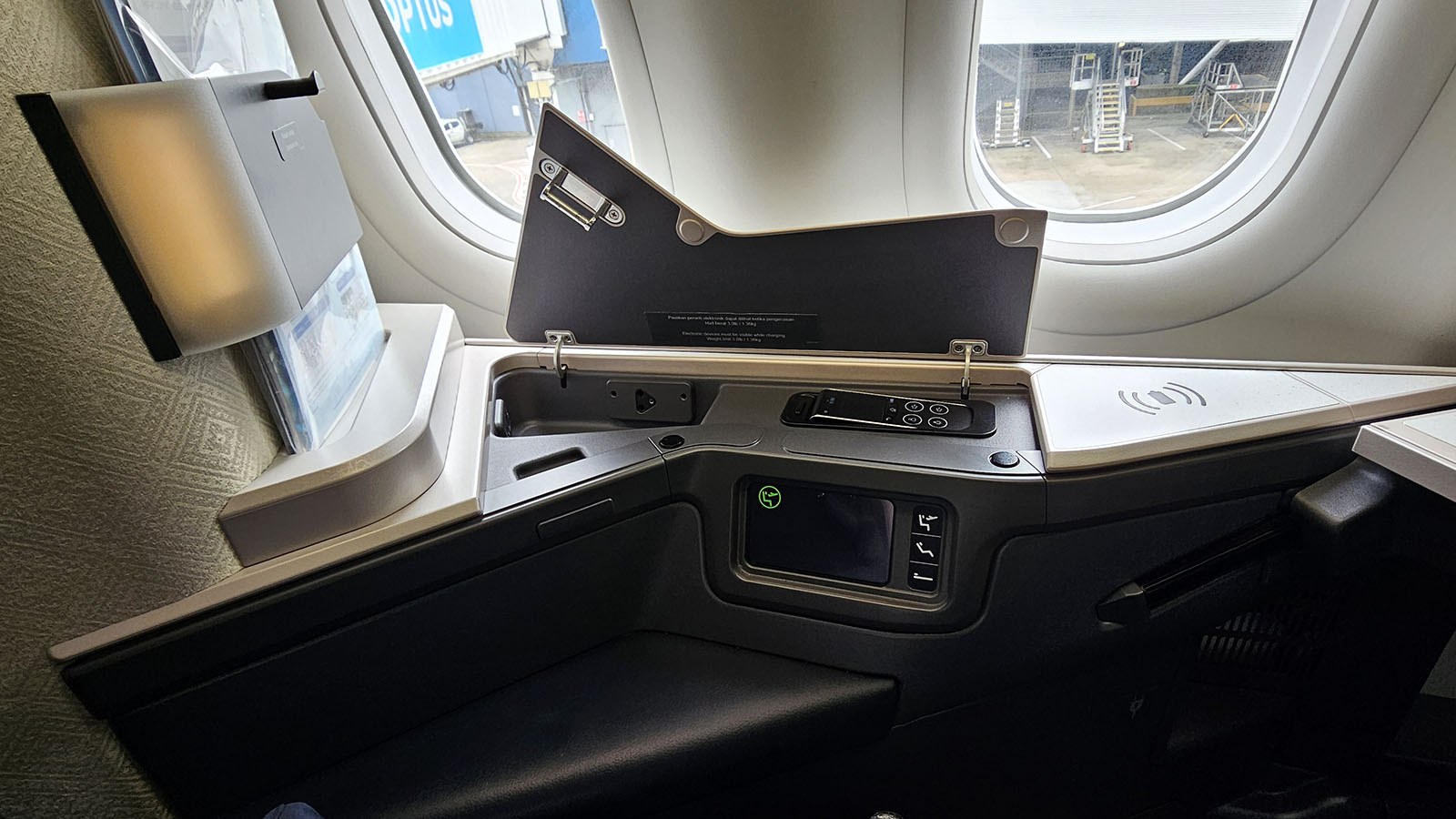 But beyond that, each seat offers a privacy door. If the seat looks familiar, that’s because it’s the Collins Aerospace Super Diamond seat, with the optional door included. If you’ve flown Club Suite on British Airways, it’s the same product – just in different colours and with branding tweaks. It’s also much like the seat you’ll find on Air Canada between Australia and Vancouver – albeit Air Canada’s seat being without the door.