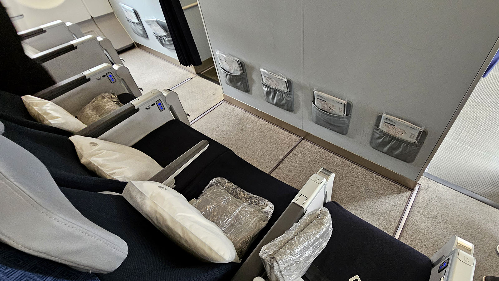 Naturally, the bulkhead rows and emergency exit seats provide the greatest amount of space. But for overall comfort on a long flight, I think I’d choose a standard seat instead. That’s because at the front of the cabin, the entertainment screen folds out from within the armrest. So, for 8+ hours, you’ll be craning your neck downwards to watch movies. At the standard seats, however, the screen is perfectly at your eyeline. Your neck will thank you!