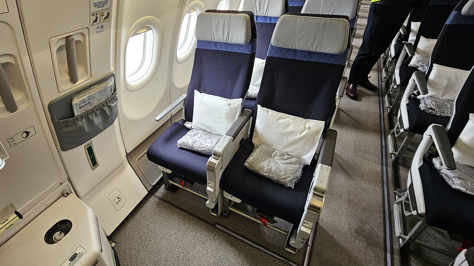 The Recaro seat is modern with an iPad-like entertainment screen. It responds to the gentlest of gestures, which means the passenger behind you won’t be whacking the screen while selecting a movie, as happens on some older monitors. Legroom is also quite respectable. Again, I’m a taller traveller, and even in the standard rows, my knees don’t touch the seat in front.