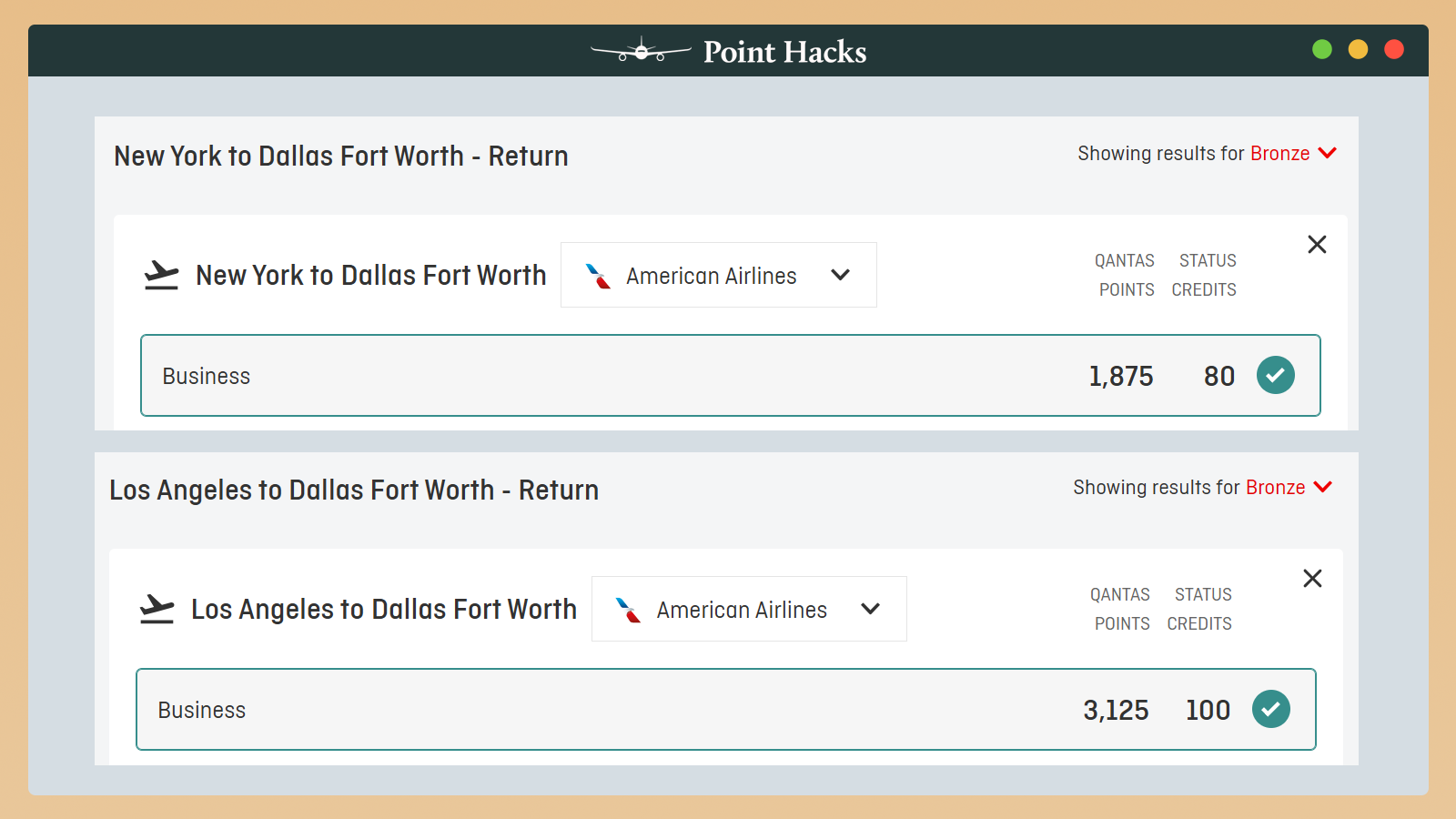 Note that American Airlines domestic/short-haul ‘First Class’ credits at Business Class rates.