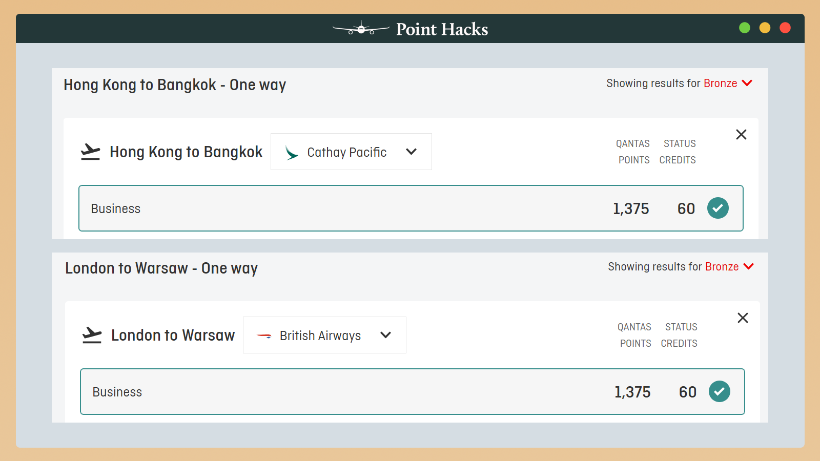 For example, flying Qantas Business Class from Hong Kong to Melbourne will earn you 125 SCs one way. The same route flown with Cathay Pacific will only garner 60 SCs – a more than 50 per cent reduction.