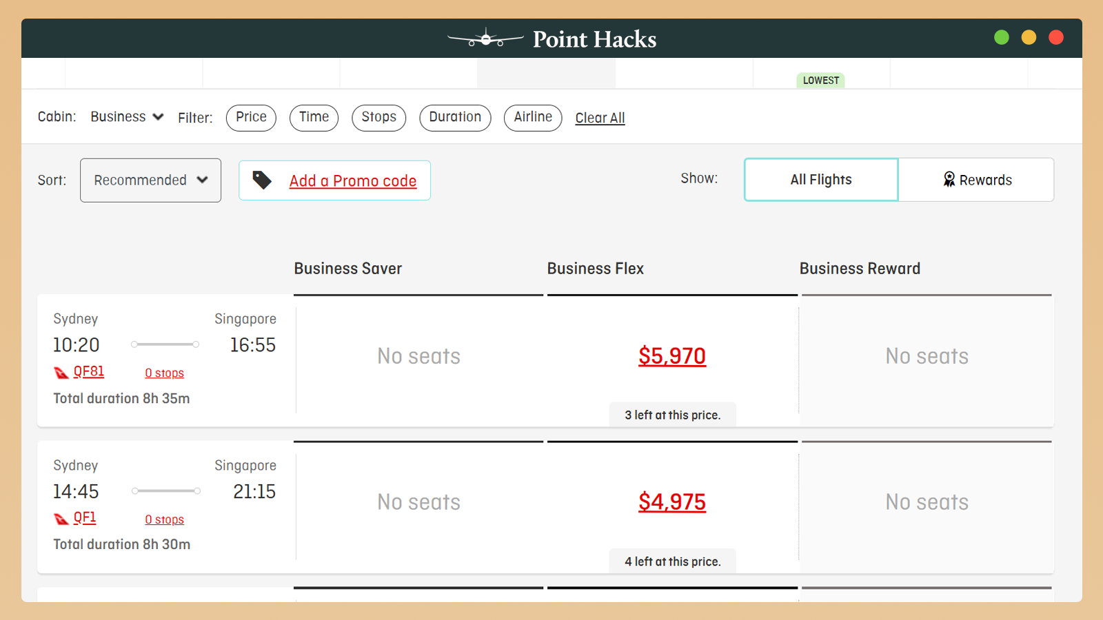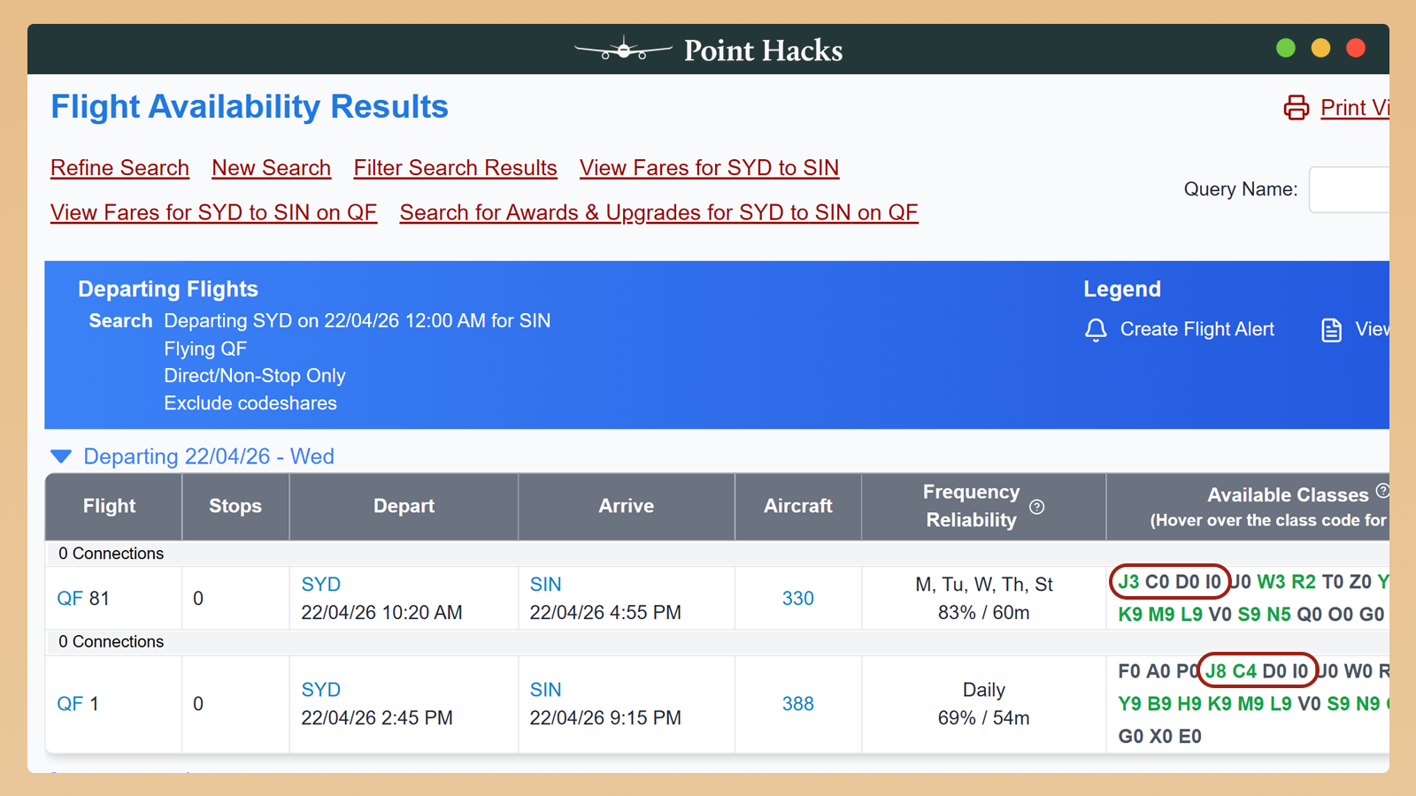 Depending on your route, you may have a few daily flights to choose from. For example, a quick look at options from Sydney to Singapore in April 2026 shows two possible daily flights: QF81 or QF1. So, which should you choose?