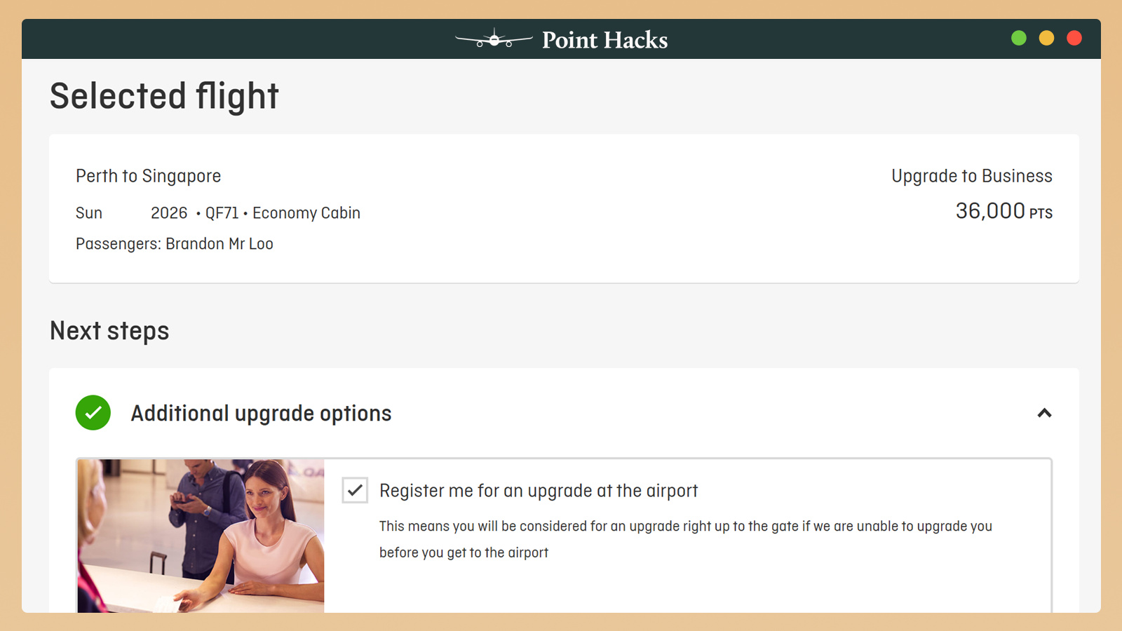 When you apply for a Classic Upgrade Reward, you’re offered an additional option to be upgraded at the airport. This is for scenarios where a last-minute cancellation or no-show frees up premium cabin space, long after the usual upgrade confirmation texts have been sent.