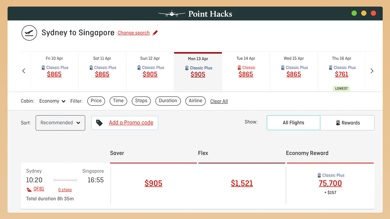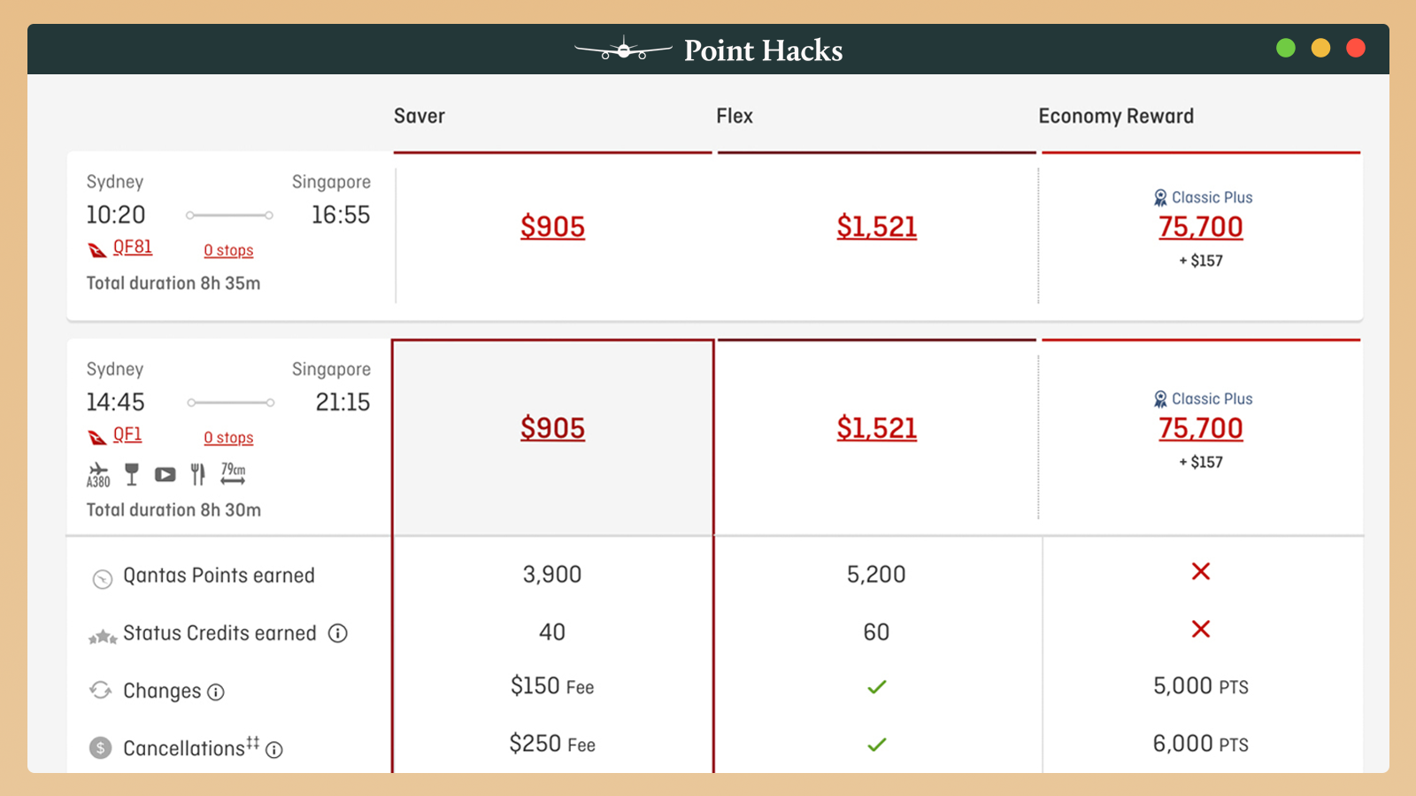 Depending on your route, you may have a few daily flights to choose from. For example, a quick look at options from Sydney to Singapore in April 2026 shows two possible daily flights: QF81 or QF1. So, which should you choose?