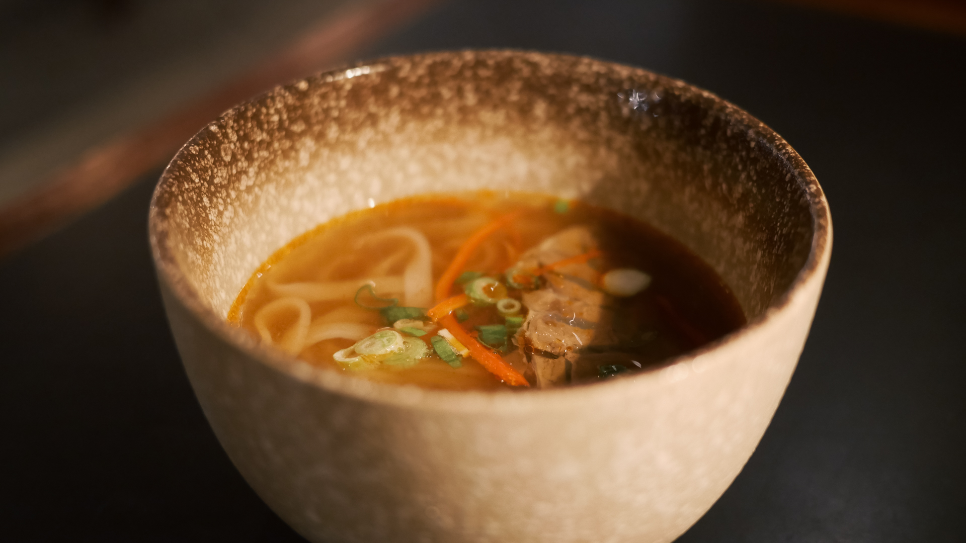 Passing through the entrance hallway, the first section (and the lounge’s most striking feature) is the made-to-order Noodle Bar and surrounding dining area. The room is restaurant-sized, full of booths and communal tables, yet still feels intimate thanks to its dim, diffused lighting thrown by individual lamps on each table.