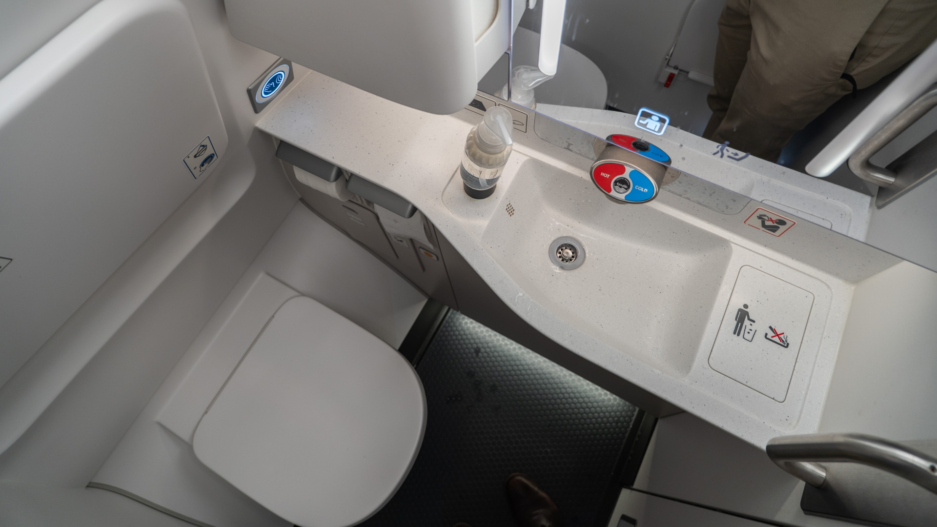 The single lavatory at the front for Business Class passengers is considerably more spacious than on the Boeing 737s. The one point of difference between Economy is the thicker hand towels on offer.