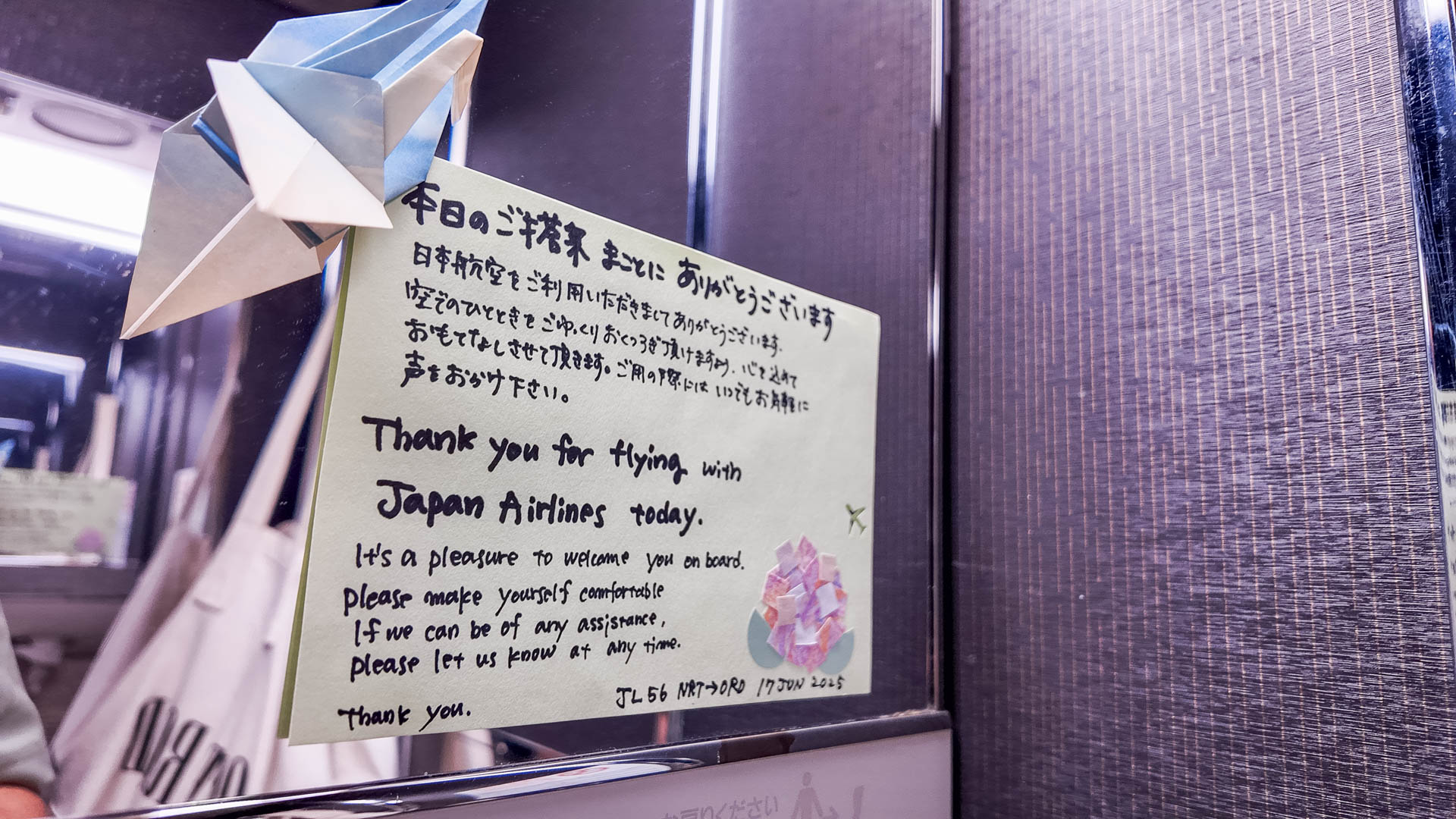 Even the lavatories impress – spotless throughout, equipped with bidets, mouthwash and fresh amenities, plus a handwritten thank-you note from the crew. I’ve never seen a team go above and beyond like this.