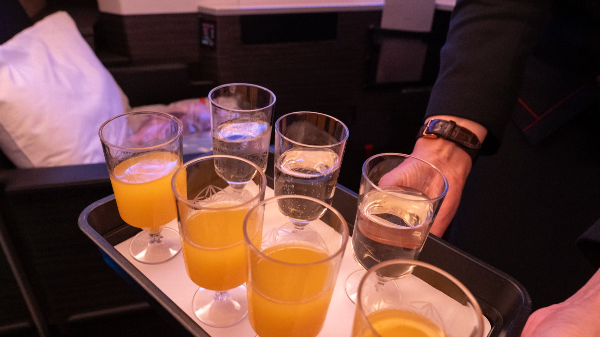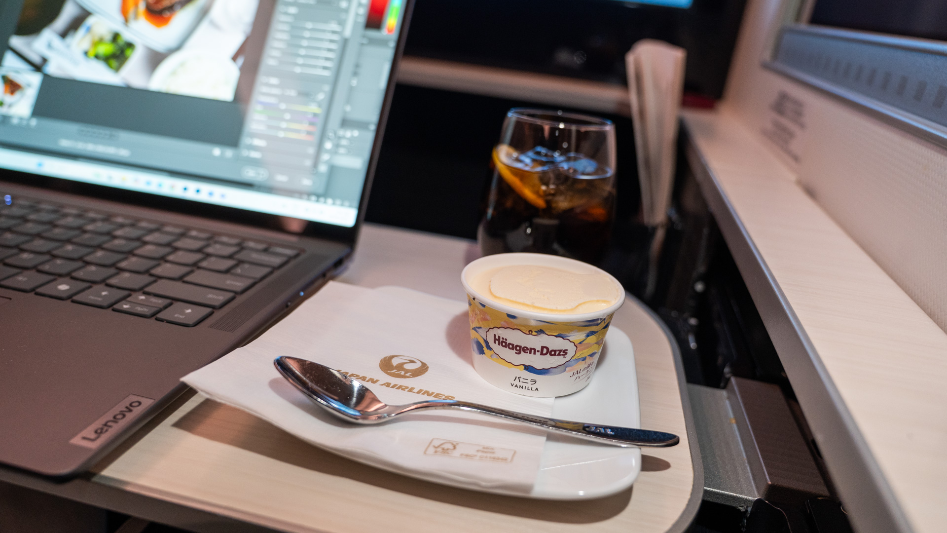 Before take-off, the friendly crew offer glasses of orange juice or Champagne in plastic cups. While this isn’t as fancy as using proper glassware, it seems to be the norm in Japan, as ANA does it too.