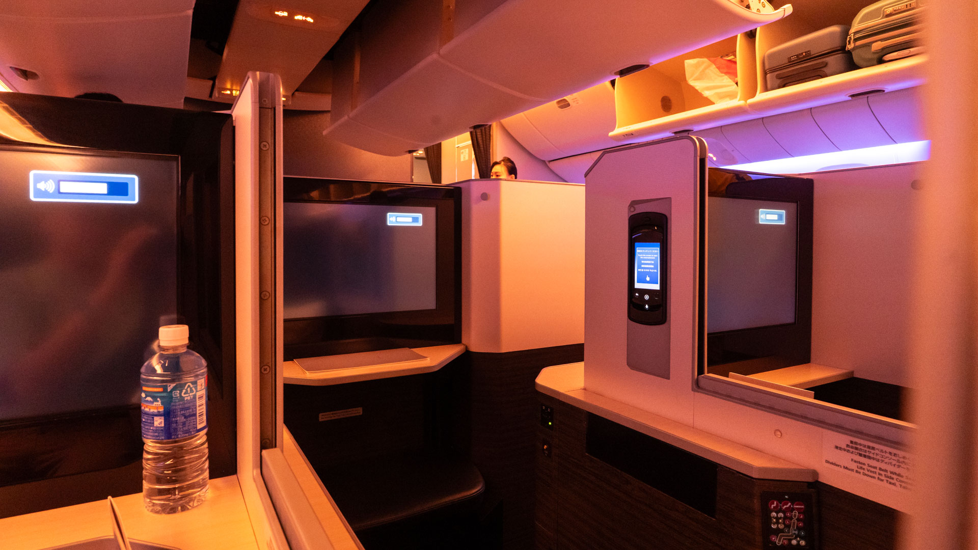 Japan Airlines’ Boeing 777s have 49 Business Class ‘Sky Suites’ in a dense 2-3-2 layout. If you see this arrangement on many other airlines (Emirates’ older Boeing 777s come to mind), you’d be rightly concerned about the middle seat.