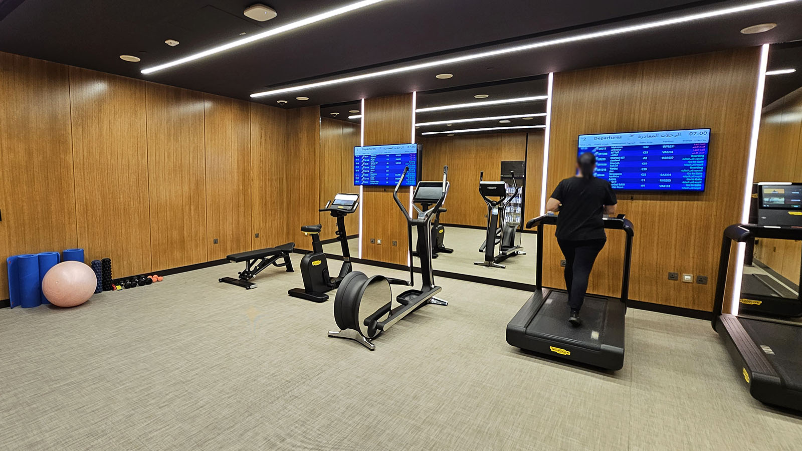 Over and above the expected shower facilities, the Al Mourjan Business Lounge – The Garden has a few extra features up its sleeve. There’s a games room with a pool table and foosball, along with a fitness centre. If I knew this were here, I’d have packed my gym gear and snuck in some cardio. Next time.