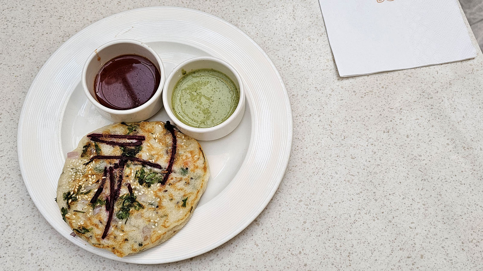 With a priority line for Business Class, check-in is quick and easy in Delhi. I make my way through security and passport control in no time at all – thanks again to a priority line for Business Class flyers. Then, it’s off to the swish Encalm Privé lounge. It’s a third-party lounge shared by multiple airlines. Staff at check-in provide the relevant invitation.