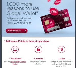 Virgin Australia are pushing usage of their Global Wallet product, which comes with every Velocity Membership Card, by offering an easy 1,000 points to anyone who hasn’t yet activated their account. To get the 1,000 points, you’ll need to activate your account on the Velocity Global Wallet website, and then load it with a minimum … Continued